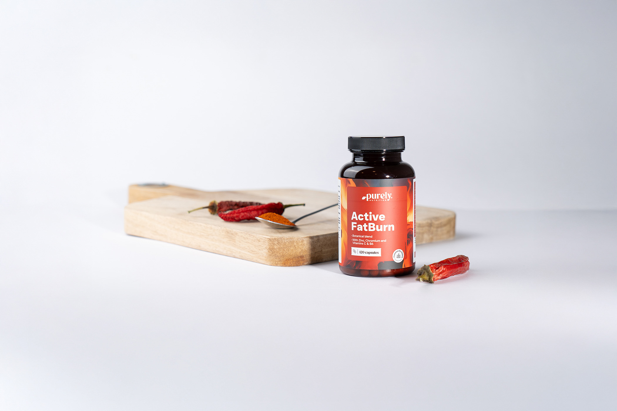 Zloženie: extrakt zo sladkého pomaranča (45 % bioflavonoidov), extrakt z grapefruitu (98 % narginínu), obal rastlinnej kapsule: (hydroxypropylmetylcelulóza), extrakt z chilli (2 % kapsakinoidov), extrakt zo zeleného čaju (95 % polyfenolov), extrakt z guarany (50 % kofeínu), stearan horečnatý (protihrudkujúca látka), askorbát sodný (vitamín C), oxid zinočnatý, extrakt z čierneho korenia (95 % piperínu), pyridoxín (vitamín B6), pikolinát chrómu.