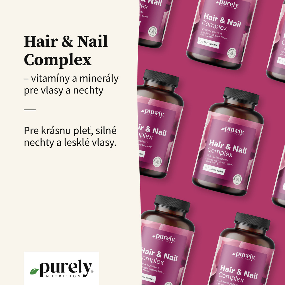 Hair & Nail Complex je komplexný produkt pre vlasy, nechty a pokožku, ktorý kombinuje až 12 dôkladne vybraných aktívnych zložiek v optimálnych dávkach. Formulácia obsahuje: