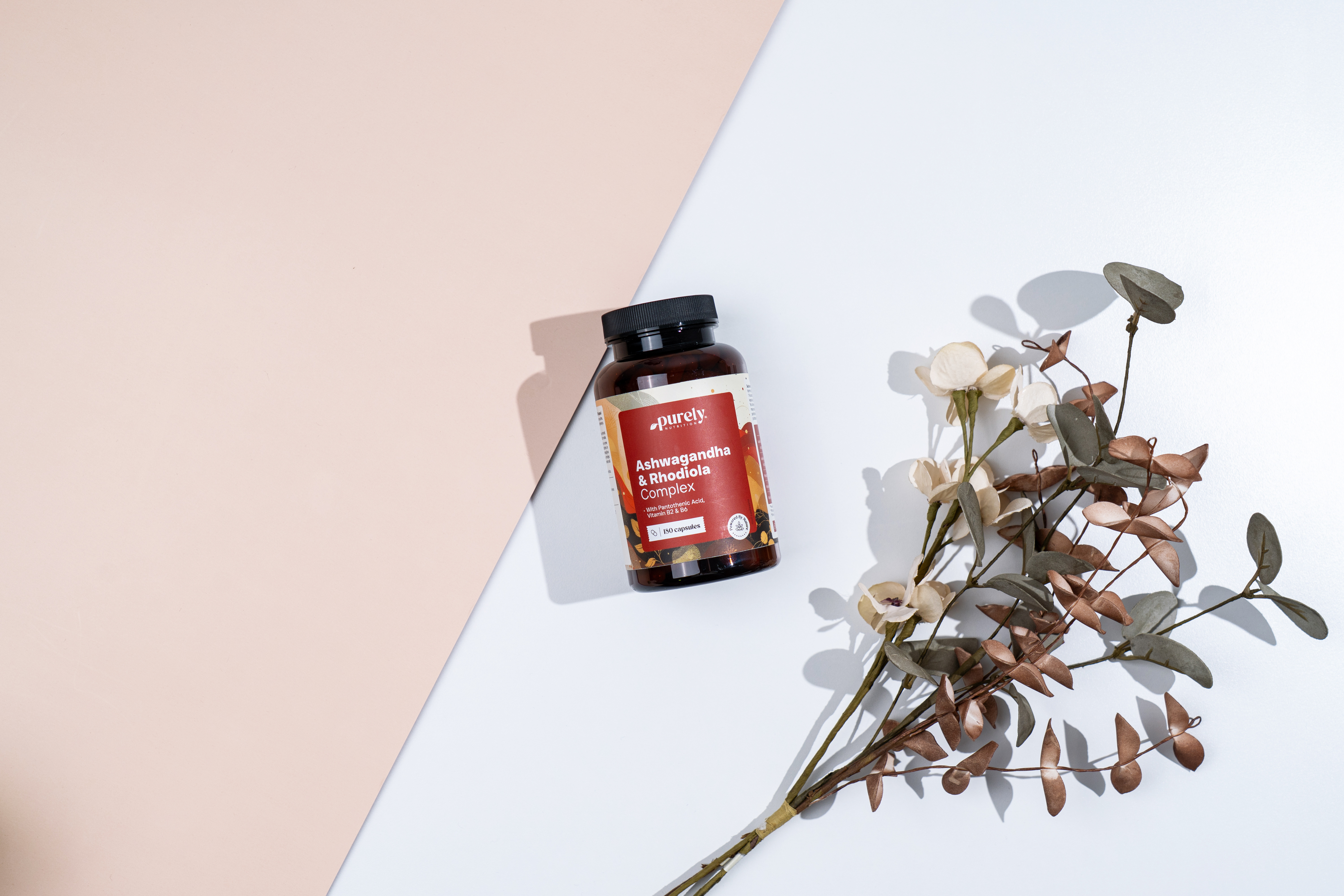 Zloženie: suchý výťažok ashwagandhy KSM-66® (Withania somnifera; koreň, 5 % withanolidov), suchý výťažok rozchodnice (Rhodiola rosea; koreň, 1 % salidrozidu), hydroxypropylmetylcelulóza (HPMC; rastlinný obal kapsuly), suchý výťažok bambusu (Bambusa bambos; mladé výhonky, 85 % oxidu kremičitého), celulóza (plnidlo), horečnaté soli mastných kyselín (protihrudkujúca látka), pantotenát vápenatý (pantoténová kyselina), riboflavín-5'-fosfát (vitamín B2), pyridoxín hydrochlorid (vitamín B6).