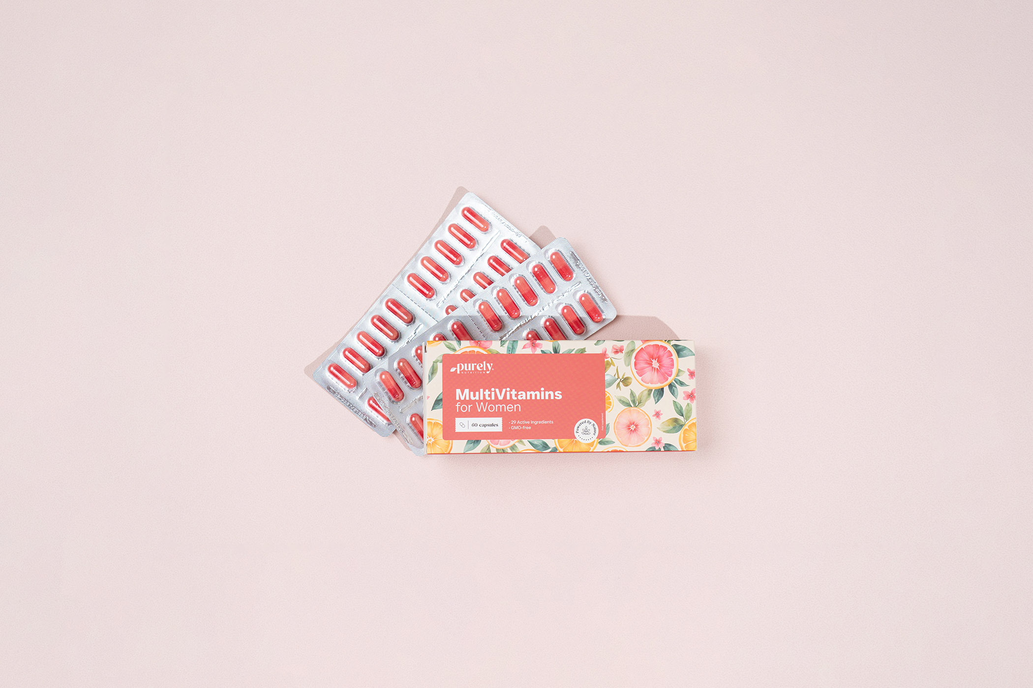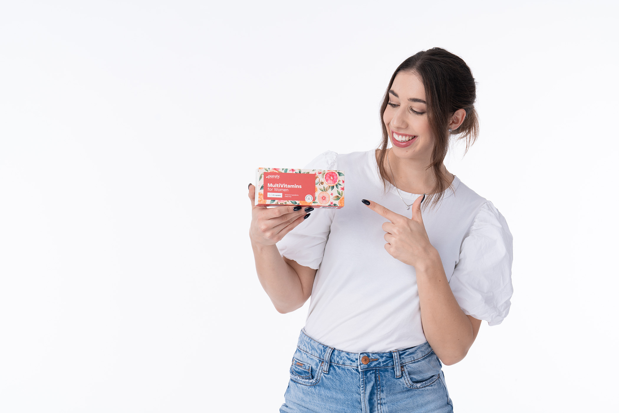 Zloženie: vitamíny (D-alfa-tokoferylacetát, nikotínamid, kyselina L-askorbová, D-pantotenát vápenatý, retinylacetát, menachinón, pyridoxínhydrochlorid, cholekalciferol, riboflavín, tiamínmononitrát, tiamín hydrochlorid, kyselina pteroylmonoglutámová, D-biotín, kyanokobalamín), minerálne látky (oxid horečnatý, síran železnatý, síran zinočnatý, síran meďnatý, síran mangánatý, seleničitan sodný, chlorid chromitý, molybdát sodný, jodid draselný, bisglycinát mangánu, pikolinát chrómu), kapsula (želatína, farbivo - azorubín), lykopén, extrakt z prasličky roľnej (Equisetum arvense), protihrudkujúca látka - horečnaté soli mastných kyselín, hydrolyzát kolagénových bielkovín, extrakt z hroznových jadier (Vitis vinifera), L-cysteín, L-metionín, luteín z kvetov aksamietnice vzpriamenej (Tagetes erecta).