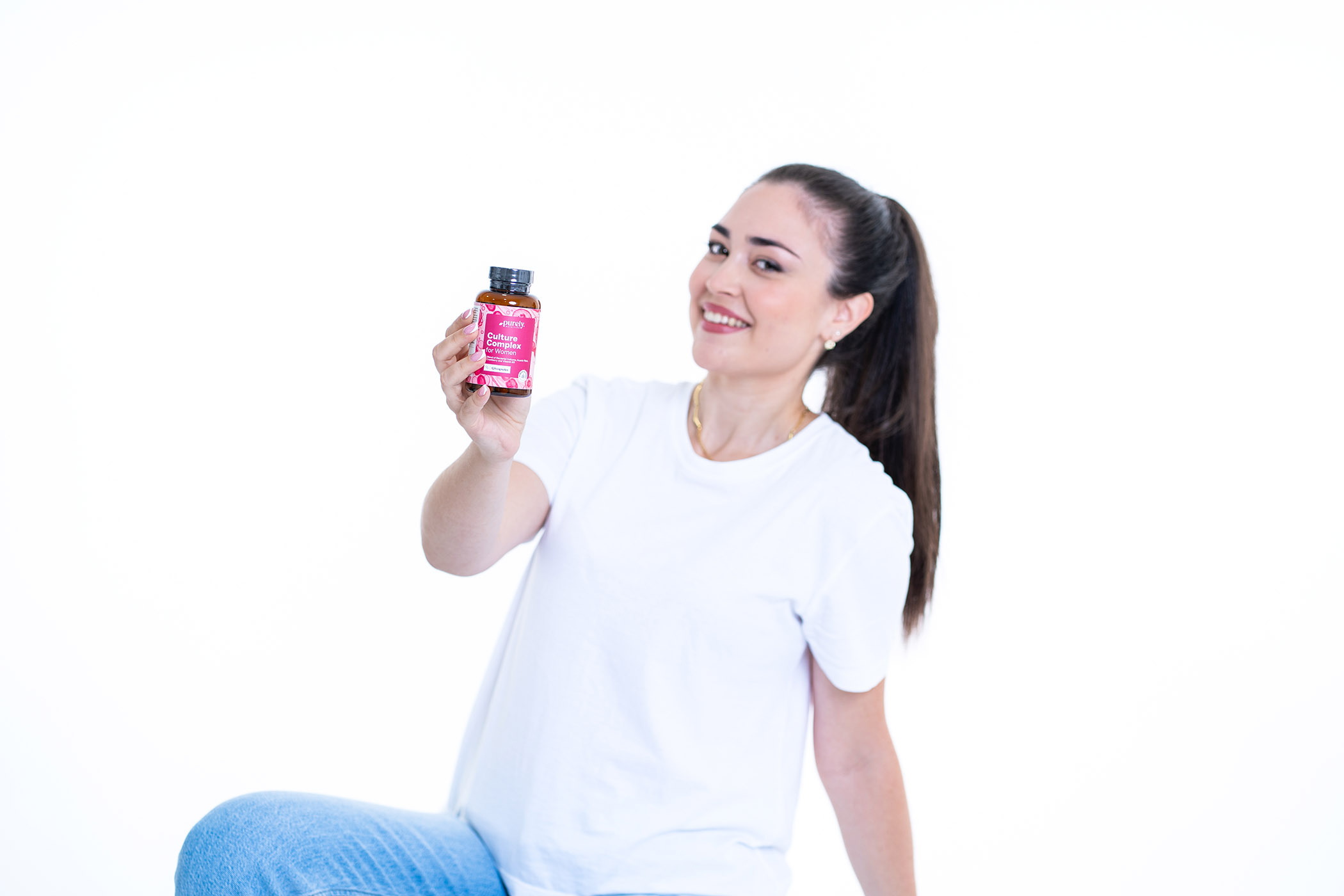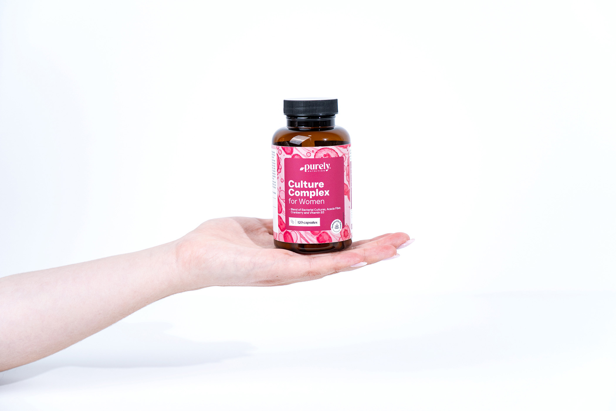 Zloženie: akáciová vláknina, plnivo: celulóza, hydroxypropylmetylcelulóza (HPMC; rastlinný obal kapsuly), suchý výťažok z brusnice (Vaccinium macrocarpon; plod; štandardizovaný na 50 % proantokyanidínov), protihrudkujúce látky: horečnaté soli mastných kyselín, niacín (vitamín B3), kultúra baktérií 500 miliárd/g (Lactobacillus acidophilus, Lactobacillus casei, Lactobacillus crispatus, Lactobacillus gasseri, Lactobacillus plantarum, Lactobacillus rhamnosus).